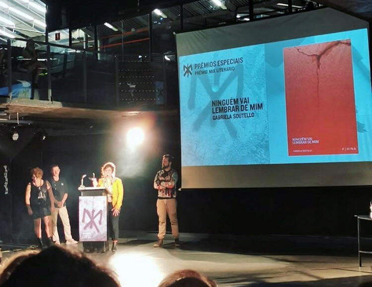 “Que importante foi ganhar o 1º Prêmio Mix Literário, do Festival Mix Brasil, em 2019, no último ano da década, no primeiro do governo Bolsonaro, em meio a tantos gritos tentando nos calar, lésbicas. Esse prêmio vir para o “Ninguém vai lembrar de mim” foi e é um estímulo para que eu continue repensando formatos de relação, e de linguagem, buscando identidades, criando referências e reescrevendo nossas histórias, para além do algoz e da vítima, do macho e da fêmea estereotipados, do discurso heteronormativo violento e reprodutor de superficialidades tóxicas que nos foi ensinado. Ser lésbica e ser escritora é desafiador, é delicioso – principalmente quando consigo ocupar espaços com a literatura, como me permitiu esse prêmio, expandindo nossas existências. Ele é nosso.”